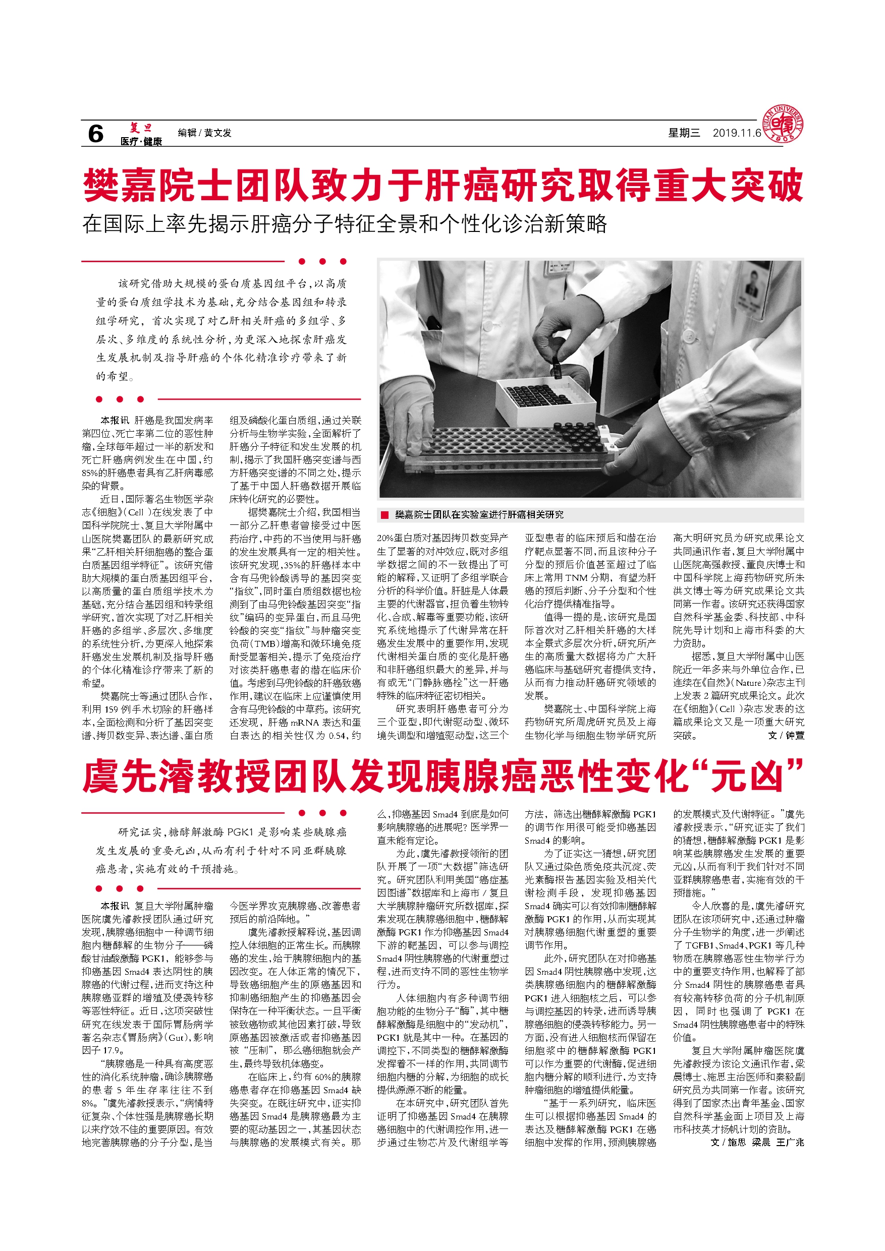 樊嘉院士团队致力于肝癌研究取得重大突破 在国际上率先揭示肝癌...