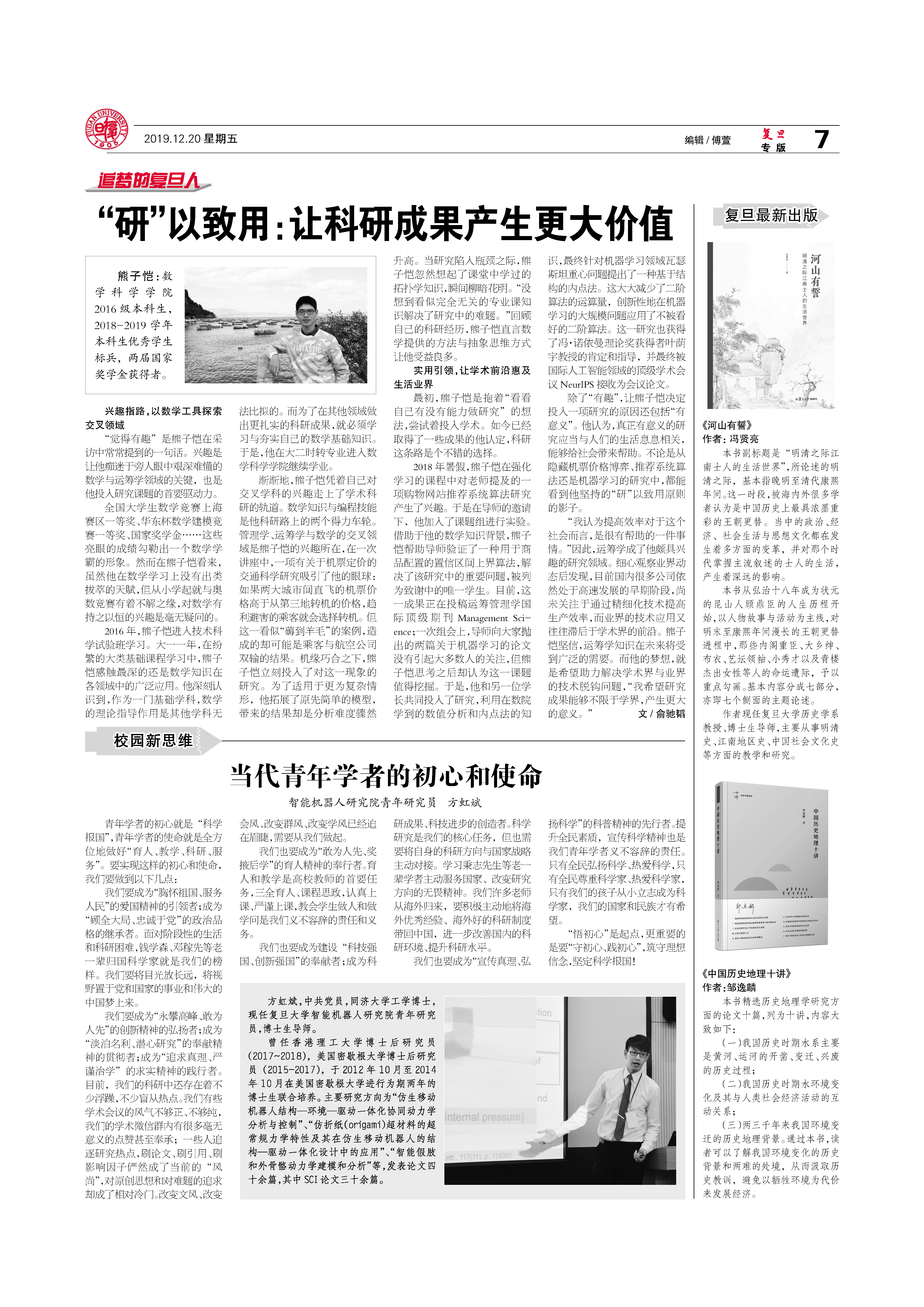 熊子恺:数学科学学院2016级本科生,2018-2019学年本科生优秀学生标兵,两届国家奖学金获得者。兴趣指路,以数学工具探索交叉领域“觉得有趣”是熊子恺在采访中...