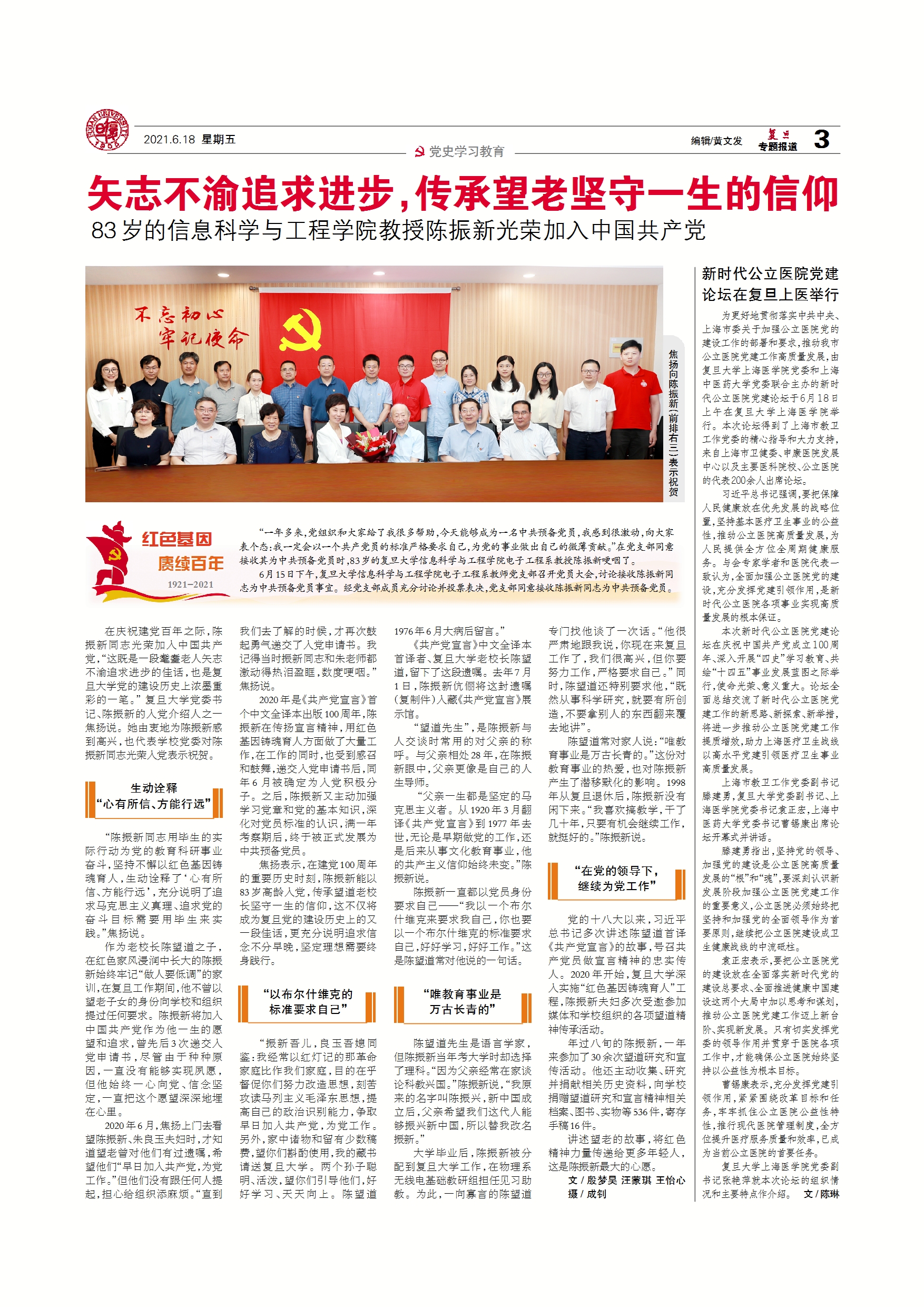 矢志不渝追求进步,传承望老坚守一生的信仰 83岁的信息科学与工...