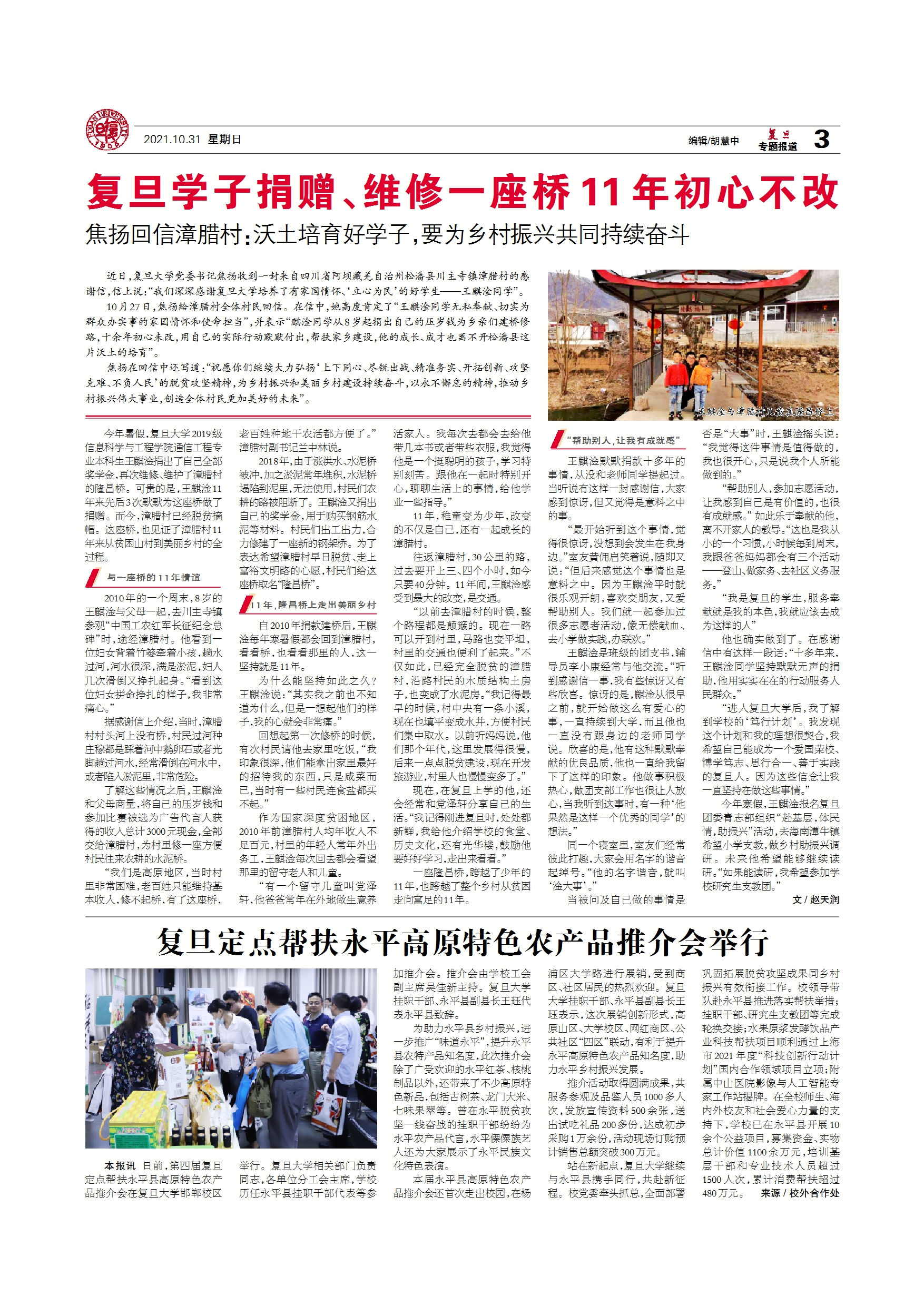 复旦学子捐赠、维修一座桥11年初心不改 焦扬回信漳腊村:沃土培...