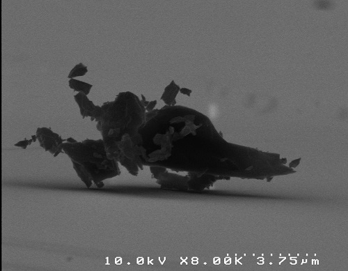 这些特殊手段非常广泛,包括实验中的一些偶然现象:一些失败的结构,样品表面的一些纳米灰尘或者残留水迹,自然结晶体的纳米结构。比如,图4中显示的,是一粒样品表面的灰尘。但在SEM照片中,其形貌酷似一辆电瓶车,因此,在充分发挥想象力下,这个灰尘变成了一辆纳米电瓶车。