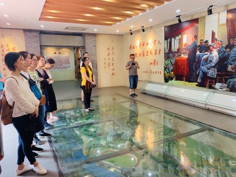 随后,全体老师来到中共中央七大会议旧址杨家岭。杨家岭是中共中央领导在1938年11月至1947年3月期间的住处,这里还曾进行过轰轰烈烈的大生产运动、整风运动,召开过具有重要历史意义的中共七大与延安文艺座谈会。会址后面小山坡上的一排窑洞,是毛泽东、朱德、周恩来,刘少奇等领导同志们当年的住所。作为复旦教师,老师们在上海多次瞻仰一大、二大、四大会址,此次来到七大会址,深切体会“从无到有、从小到大、从苦难走向辉煌”的内生动力,那就是信仰的力量。
