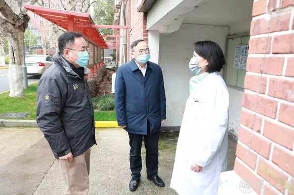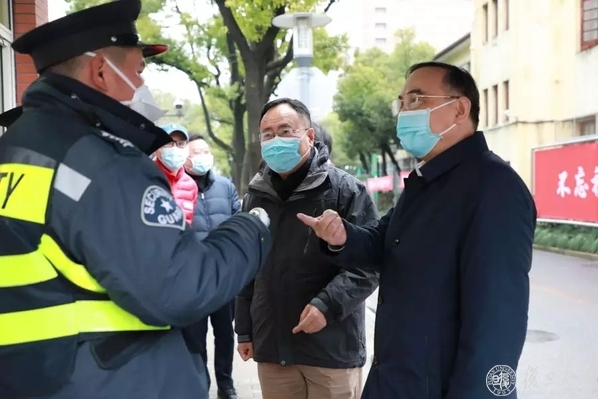 会前,袁正宏、桂永浩一行来到东安路校门、校医院和学生宿舍,实地察看了疫情防控工作落实情况。