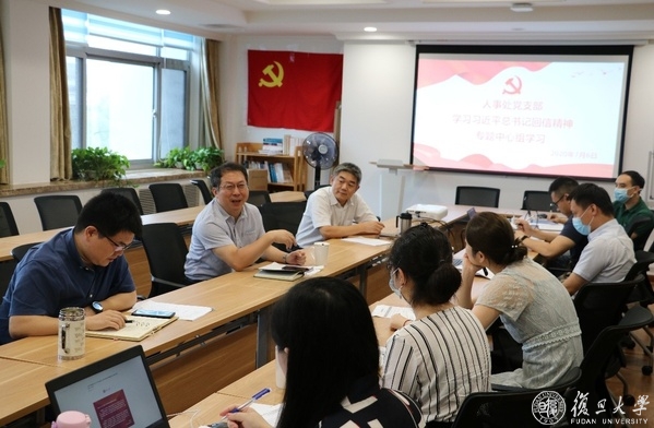 在小组讨论基础上,人事处党支部又开展了主题党日活动,各党小组紧密结合工作实际交流发言。大家一致认为,习近平总书记给复旦青年师生党员回信,是每一名复旦人的光荣,更是责任。要把陈望道老校长翻译《共产党宣言》首个中译本的故事一代代讲下去,把追求真理、为民族振兴事业不懈奋斗的精神在本职岗位中不断发扬光大。
