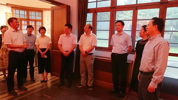 8月5日上午,尽管室外狂风骤雨,位于国福路51号的陈望道旧居内却是温暖洋溢。市委宣传部副部长、市文明办主任、市志愿者协会会长潘敏一行来到这里,向《共产党宣言》展示馆党员志愿服务队的队员们送上慰问,感谢他们在暑期坚守岗位,为讲好真理故事、传播“宣言精神”辛勤付出。
