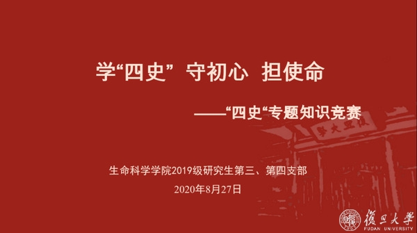 为贯彻落实总书记重要回信精神,深入开展“四史”学习教育,生命科学学院2019级研究生第三、第四党支部联合开展“学‘四史’守初心 担使命”专题组织生活,通过知识竞赛的方式深化“四史”学习成效。