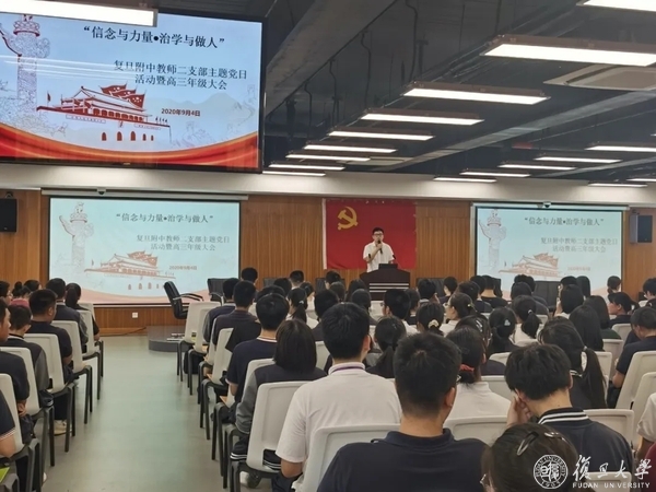 近日,复旦附中教师二支部开展“信念与力量·治学与做人”主题党日活动,将理想信念教育与高三学生教育教学实际相结合,深入贯彻学习总书记重要回信精神。支部全体党员、高三年级全体学生、班主任及部分非党员教师等近500人参加,活动由支部党员、年级组长张慧腾老师主持。