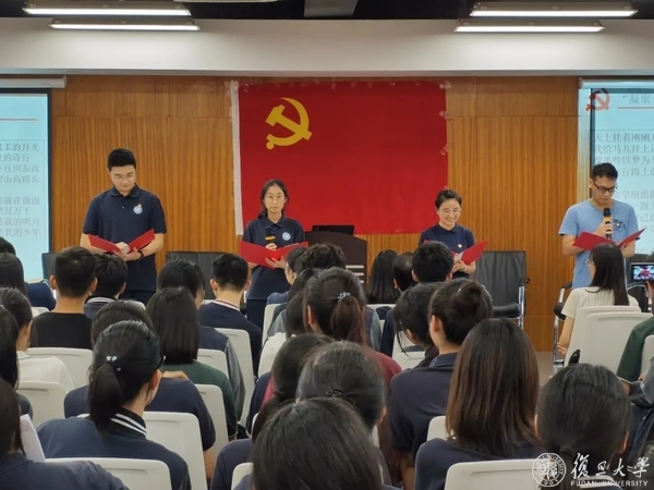 最后,在“凝聚与奋进”师生朗诵环节,支部党员、化学教师张苧丹、数学教师张哲、章洋和张文韬同学共同朗诵了由高三学生张驰创作的诗歌《心有所信》,收获了在场师生的热烈掌声。