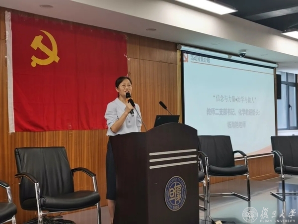 党支部书记、化学教研组组长杨海艳介绍了此次主题党日活动的安排,主要由“感召与引领”师生主题演讲、“传承与发展”微论坛、“凝聚与奋进”师生朗诵三个部分组成。她指出,此次主题党日活动不仅是师生对于总书记重要回信精神的集体学习,还是高三年级师生的集结号角。在这特殊的一年,高三年级组43名教师是全体466名学生坚强的后盾,而其中25名教师党员更应该冲在前面,引领所有师生在学思践悟中坚定理想信念,在奋发有为中践行初心使命。