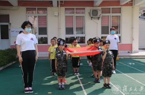 鲜红的国旗在小小护旗手和升旗手的保护下,随着激昂的中华人民共和国国歌声缓缓上升,老师和孩子们整齐列队行注目礼。庄严的升旗仪式和武术操展示将大班的红色教育活动推向了高潮!疫情背景下,虽然无法邀请家长来园,但通过线上的直播,家长们全程观看了升旗仪式,为庄严而神圣仪式下的孩子们鼓掌。