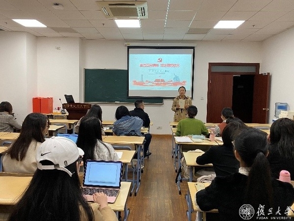 李洁谈起自己学生时代学阅读原典的情景,希望研究生党员们从本次党课中汲取捧起原典的勇气,常读常学,学思践悟。同学们也积极分享感悟。丁泉琨从疫情期间的见闻中再一次感受到社会主义制度优越性;周芸芸、高晓宁分享了她们入学时参观陈望道旧居的经历。董名杰鼓励同学将为人民服务的理念付诸实践。