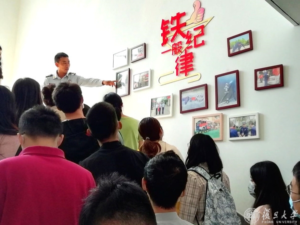 随后,队员带领学生党员们来到消防车大楼内部,依次参观了宿舍、休息室、纪念厅及文娱活动室等。通过聆听消防队员介绍日常工作训练情况和抗疫期间的经历,同志们更加深刻体会到了消防队员们“铁一般的纪律”和他们“牺牲小我、成全大我,团结一心干大事”的精神。