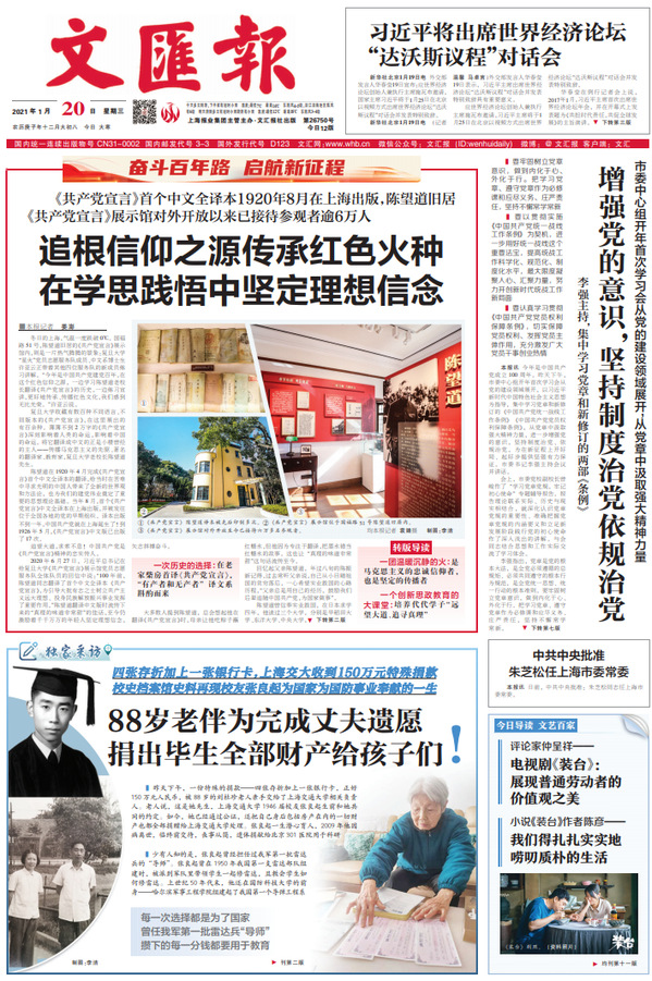 回忆起父亲陈望道,年过八旬的陈振新记得,过去常听父亲说,自己从小目睹祖国的贫穷落后,一心希望实业救国的心路历程,“父亲总是用自己的经历,鼓励我们后辈追随中国共产党,为国家做事”。