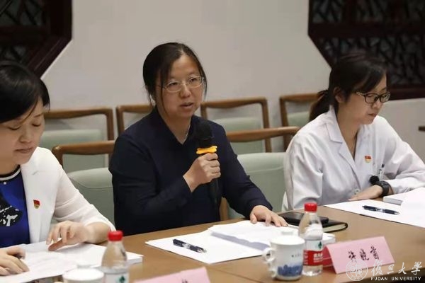 座谈交流会上,基础医学院党委书记许晓茵、儿科医院党委书记徐虹、眼耳鼻喉科医院党委书记钱飚、华山医院急诊ICU党支部书记杨敏婕、公共卫生学院卫生事业管理与卫生监督联合党支部宣传委员孙梅就各自院系和附属医院的特色工作进行了交流发言。