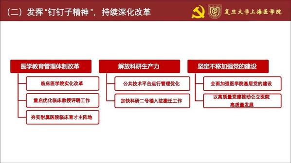 自党史学习教育开展以来,复旦上医坚持学习教育与中心工作相结合,科学谋划党建思政与事业发展深度融合,精心部署工作。
