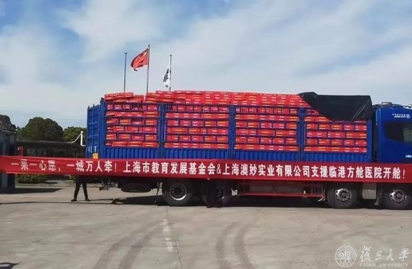 文创同学会向6家复旦直属医院捐赠200台电扇,为复旦中学采购所需物资送抵校园,解校内师生的燃眉之急。