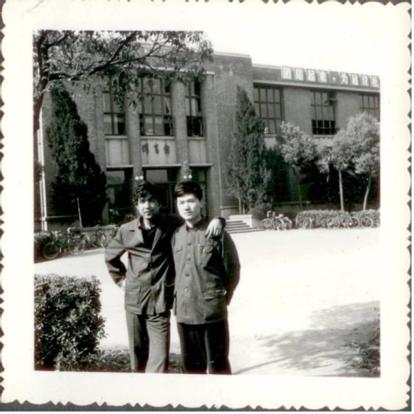 吴晓明(右)与同学木特力甫在理图前合影