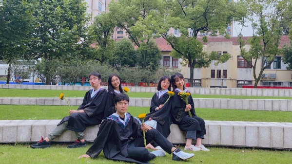 陈天慧和经常一起学习的朋友们在医学生誓言广场拍毕业照