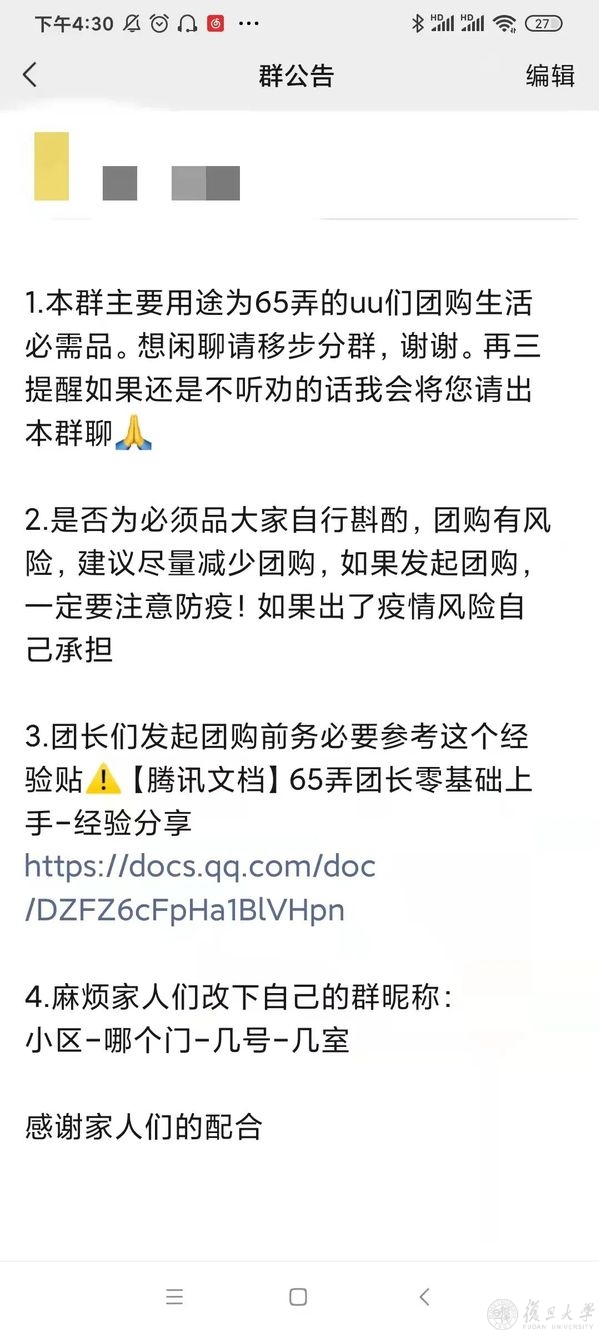 这个时候群里有人向我请教如何开团,想要了解一些基础的步骤。第一次开团需要注意些什么?用什么接龙?需不需要和居委报备?如何做好防疫环节?我决定总结自己之前的经验和教训,给其他想做团长的住户一份速成指南。