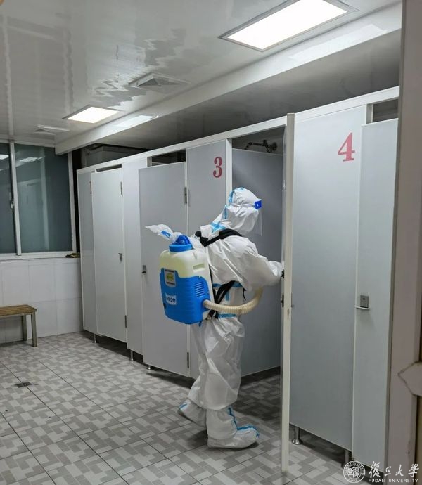 而在两周前,袁正宏率工作组入驻护理学院院区,协调安排学生宿舍楼内各楼层公共浴室设施改造。很快,新增的28台排风扇完成安装。静安区中心医院捐赠的10台移动紫外灯也陆续添置进入公共浴室。在盥洗室同时安装的,还有14只紫外线灯管,成为每日常规消杀的补充。