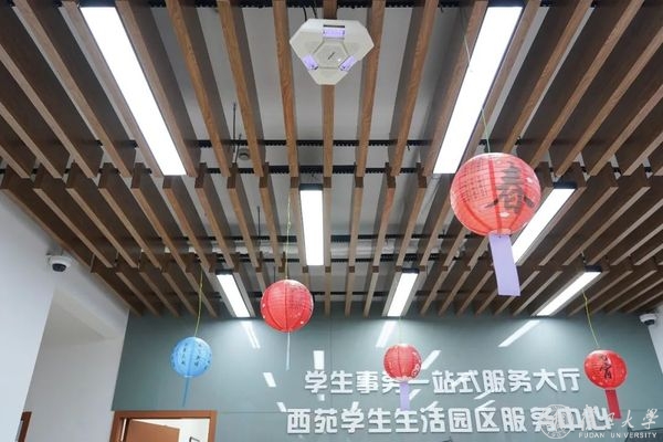 图为安装在西苑学生生活园区服务中心的222纳米紫外灯