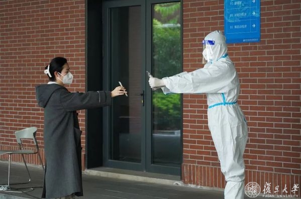 这天的上海,天色灰蒙暗沉,天气预报有雨。作为核酸检测教师志愿者的负责人,我一如往常早早来到西苑13号楼前,提前做好准备工作,祈盼雨可以下得晚些再晚些。开始工作后,现场一切井然有序,虽然天色越来越暗,但眼看着99%的学生都做完,只剩下二三十人了,我十分庆幸。