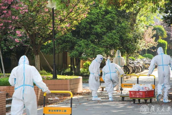 坚持学习的同时,提高免疫力也尤为重要。小小的空间里 也能有酣畅淋漓的跃动,强身健体,运动不停。下楼处理垃圾时听到阿姨们聊天,打扫卫生、处理垃圾、值班封闭后的每一天,阿姨们不厌其烦地守在后勤保障的岗位上守护着复旦,也期待着解封后的未来。