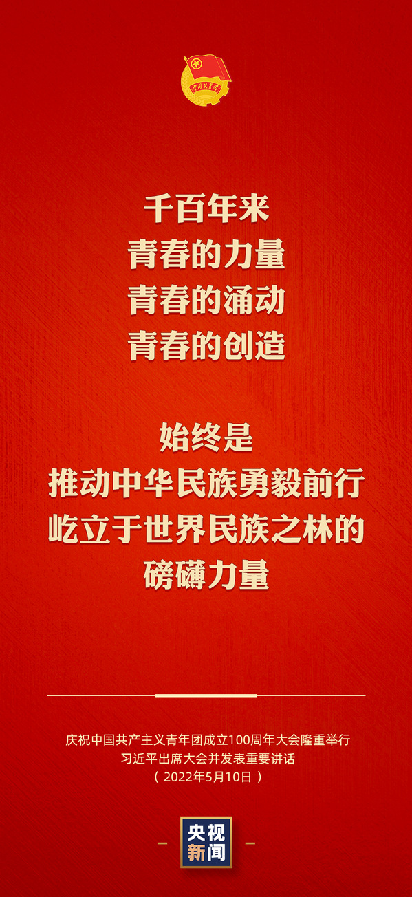 5月10日上午,庆祝中国共产主义青年团成立100周年大会在北京人民大会堂隆重举行。中共中央总书记、国家主席、中央军委主席习近平出席大会并发表重要讲话。