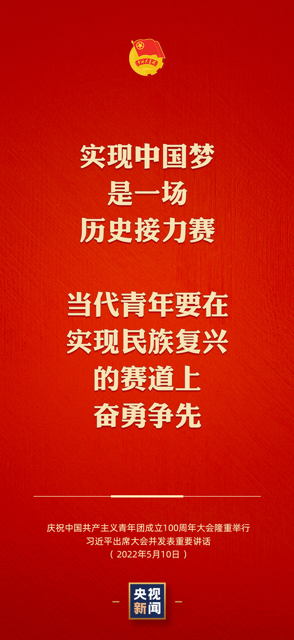 今年是中国共产主义青年团成立100周年。上午,我们一同收看了庆祝中国共产主义青年团成立100周年大会直播,收听了习近平总书记发表的重要讲话。总书记的重要讲话为新时代的青年工作指明了方向,为我们做好青年工作提供了根本遵循。