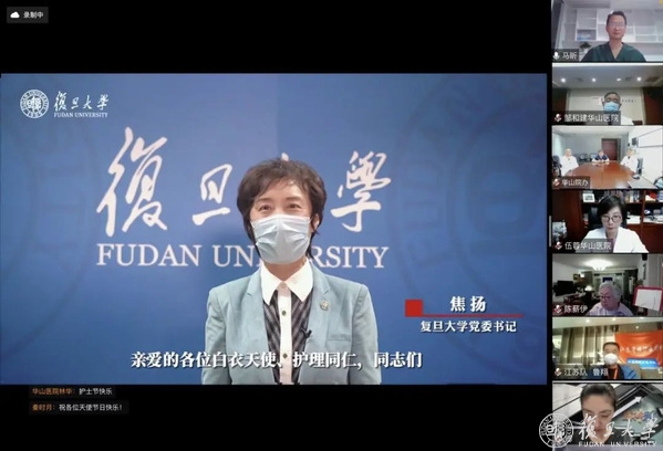 华山医院领导班子、驻守各院区指挥部的领导们、中层干部录制了祝福视频,为护士人送上诚挚祝福,活动在全场打开摄像头、开启麦克风同唱《明天会更好》的歌声中结束。屏幕的大家依依惜别,诸多不舍。