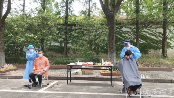 理发结束后,志愿者不忘认真对工具进行清洁消杀
