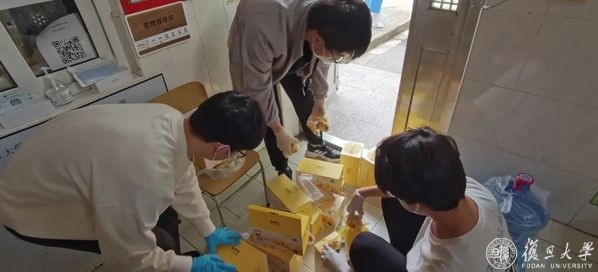 董宇泽还担任楼宇负责人和楼层长。需要搬运抗原等小物件时,他就带领楼层长做运送工作。“在搬之前,我自己首先做好个人防护,戴好手套和口罩,把已经消毒静置过的物资从楼宇外搬到楼内。然后在群里通知各楼层长们领取。我也会提醒他们做好防护,带好袋子装运物资分发给同学们。”作为楼层长的他,会跟室友一起把物资用酒精湿巾先擦拭一下外包装,再分发出去。