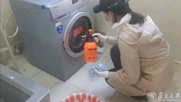在网格化分类管理期,范佳晨多次参与户外保障志愿者工作。她时常提醒同学们不要串网格、户外活动回楼时要做好手部和鞋底消毒等。自己在消杀方面,也是毫不马虎。“希望同学们能注意日常的消杀,守护我们来之不易的战斗成果。”