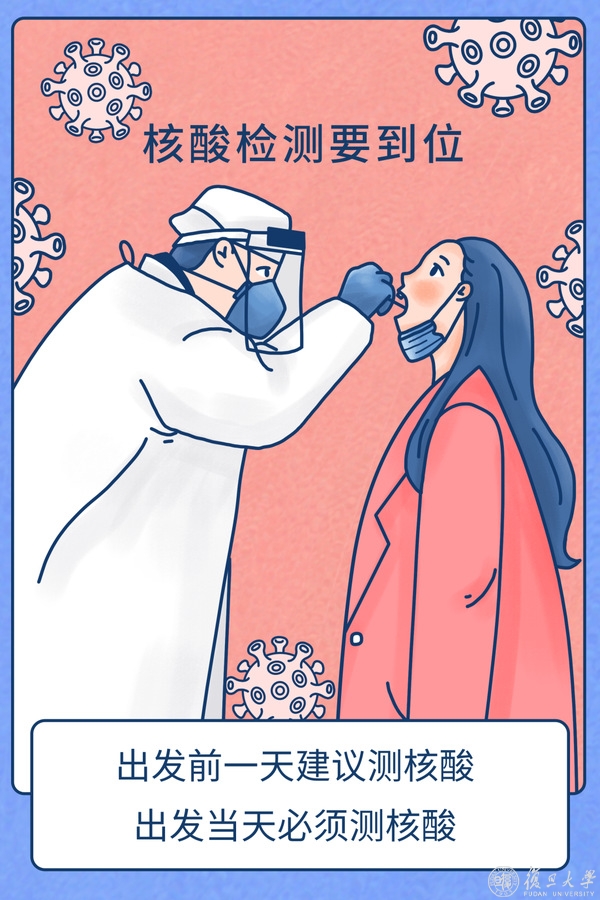 D:我住在校外,和同行同学在出发前两天一起做了一次核酸,为保险起见,出发前一天又联系上门核酸机构,加测一次。