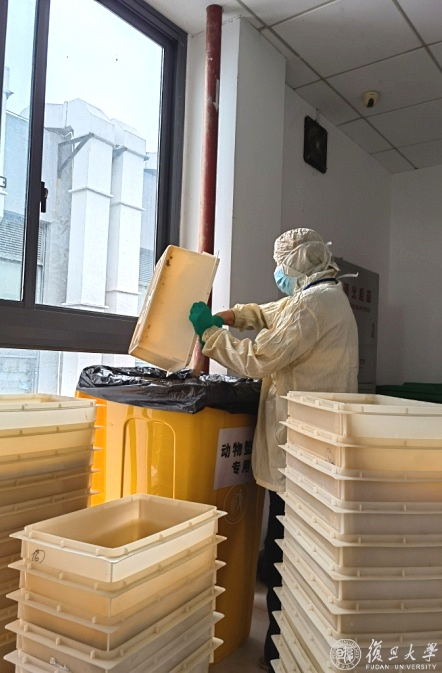 疫情封控之下,实验动物离不开人的照顾,做了一半的实验更不能间断,可急坏了动物“主人”们。有这么一群复旦人,他们的工作是照料张江校区内8000只实验动物,他们坚守校园一线至今,不仅把小动物们照顾妥当,也替那些因疫情防控,未能亲自前来实验的复旦师生继续进行着动物实验。满足课题组科研进展、学生毕业的师生诉求,人数减半,工作加倍,他们团结在一起,就是一道疫情期间,复旦科研不停摆的坚强保障!