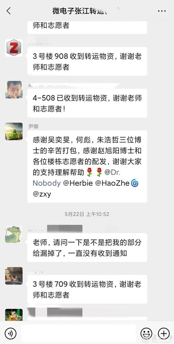 “临近同学们返乡节点,科研急需的物资、放在实验室的身份证件等,需要从实验室运送到他们手上。在学院尹娜老师的指导下,我们收集好同学们的需求清单把他们所需要的物资收好、打包交给转运的志愿者。”何彪说。