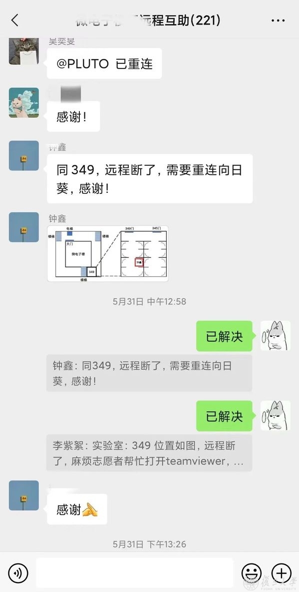 此外,他们为因疫情原因无法到实验室开展工作的师生们提供保障服务,“因为一些项目的保密规定,学院很多师生设备只能在实验室电脑上面连接服务器。很多同学在寝室坚持开展科研工作,但需要远程连接到校内的电脑上去访问学校的一些设备。实验室一些电脑和一些设备需要特别的操作,同学们远程连接也经常会遇到一些问题,需要我们帮助他们重新设置远程连接上网。”