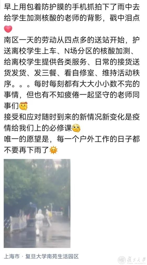 从3月13日复旦校园准封闭管理以来,党委学生工作部和研究生工作部(下文简称:学工部、研工部)不少老师们驻扎学校,以校为家,在园区一线为同学们服务,处理各项防疫工作和学生工作。