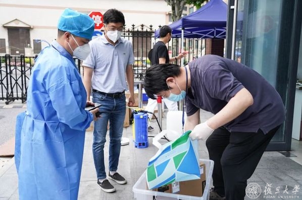 最近,随着快件寄送业务的逐步恢复,学校收到很多实验用冷链标本,为保证标本的有效性,卢鸿和各方积极沟通,完善冷链物资的取件流程。下雨天,虽搭建了雨棚,但地面的雨水还是会浸湿静置物品的外包装,卢鸿又和大家一起琢磨了一个小妙招,把塑料箱反置在地上,垫高快递,防止包装接触湿滑的地面。“很多具体的细节都是在一线工作中不断推敲完善的。这也是一个大家相互沟通磨合的过程。”卢鸿表示。“把门守好,校园里面环境干净了,师生都安全了,再累都值得。”