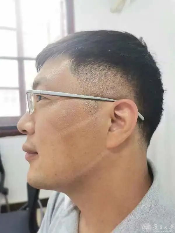 卢鸿脸上被烈日晒出黑白分明的“口罩印”
