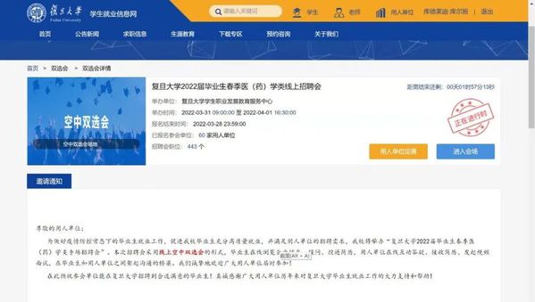 据悉,此次线上招聘会采用线上空中双选会的形式,毕业生们可在线浏览企业信息、参与互动和面试,近60家用人单位参与了此次招聘活动。除了医(药)学类专场,学校还将于近期举行综合类专场线上招聘会,面向不同专业的毕业生。