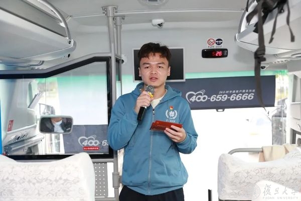 “我非常荣幸能够作为红色大巴之旅的首批乘客,踏上这段充实的旅程。8名讲师分别从自己的学思践悟出发,在不同的时间、不同的地点为我们讲述了不同的故事。从红色革命到科技发展,从百年党史到浦东飞跃,我仿佛看到了一个时空间立体的红色画卷在一路铺开。学习到了诸多知识,同时也大大开拓了眼界,实在是一场非常难忘的旅程。”2021级物理学系直博生、博讲团预备讲师詹研说。