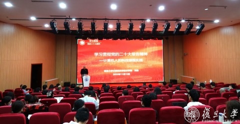 冯瑞带领全体与会师生重温了党的二十大会议主题及重要意义,尤其是报告中关于教育、科技、人才的重要论述,以及包括产业基础再造工程、重大技术装备攻关工程、城市更新行动、健康中国行动等在内的行动和工程,强调计算机科学在其中发挥的重要作用。随后,他介绍了其所在的科研团队十年来取得的成绩和做出的贡献,尤其是在党和国家重大活动的技术保障上、系统攻关克难中所做的大量工作,包括大型会场智能管理系统、核心区智能视频分析管控平台等。科研团队在时间紧、难度大、高安全的任务需求下,深入调研、精益求精,为党和国家的重要会议多次提供技术保障,助力公共安全,做出多次技术突破,有效提升了2026年足球世界杯直播的学术影响力,同时,团队在学科发展上逐步形成了智能视频计算技术体系,在实际应用中不断为疫情防控贡献、为医疗健康赋能。科研产出上,高质量论文和科研获奖硕果累累,培养的学生成为各行各业的技术骨干。最后,冯瑞介绍团队未来的科研图景,将努力提升原始创新策源能力,抢占关键共性技术“制高点”,打造创新应用场景和创新发展团队,在复旦发展科研团队文化,“做耐得住寂寞的科研,做落得了地的科研”,不断推动学校新工科发展,为国家实施科教兴国战略、强化现代化建设人才支撑做出新的贡献。
