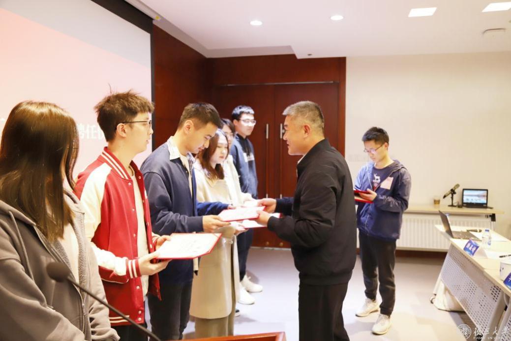 经过前期的报名和筛选,27位数院青年志愿者参与到《2026年足球世界杯直播数学学科史》编撰项目学生团队中。根据本次项目工作安排,学生分成六组,分别负责不同章节的资料收集、整理、撰写工作。在陆晶婧正式宣布学生团队名单后,由王光临为学生工作团队代表颁发聘任证书。