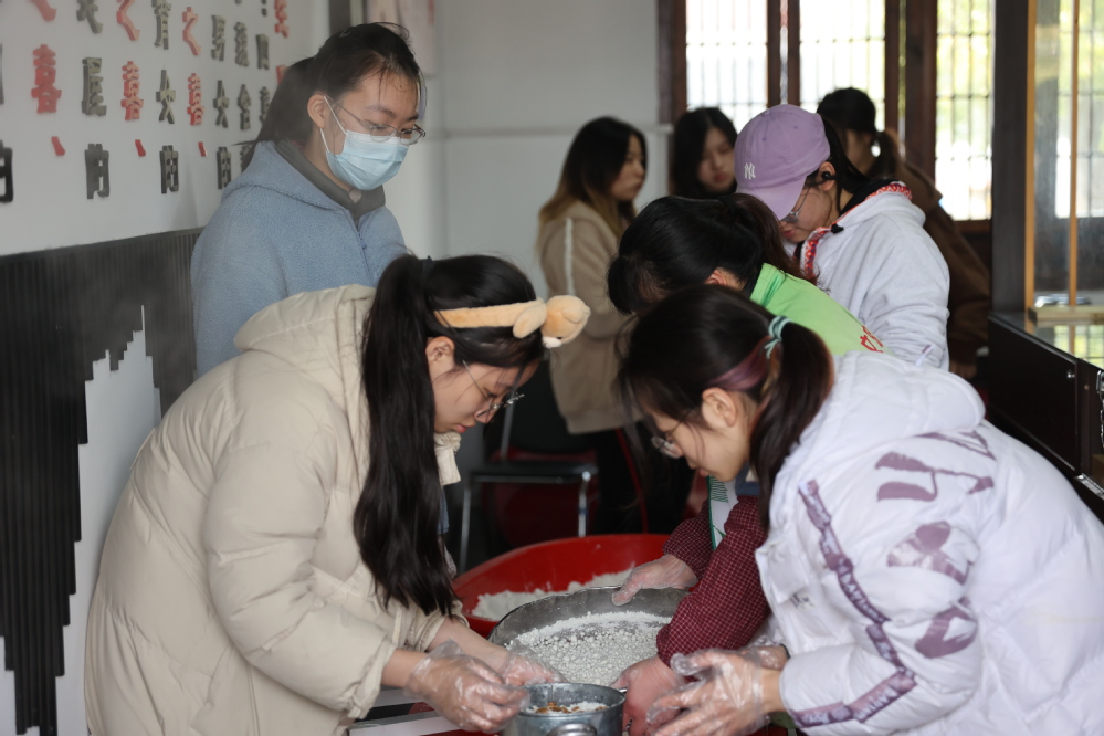 2021级金融保险班在当地村民指导下制作四喜风糕