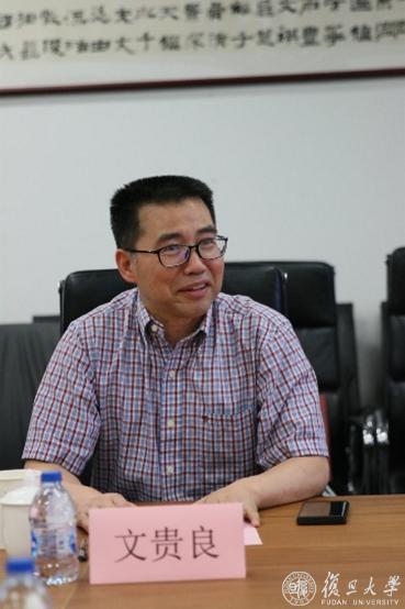 文贵良对复旦中文系的接待安排表示感谢,对包括两系联合开展中文专业本科生学术论坛在内的合作表示高度评价。他介绍了此次调研交流的主要议题,并就华东师大中文系在一流师资队伍建设、“新文科”建设规划以及近期重要的工作动态做了说明。