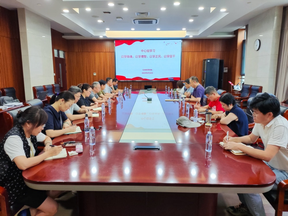 8月22日,生命科学学院党委理论学习中心组召开主题教育专题民主生活会前专题学习会。学院党委书记陈浩明主持会议并领学“习近平总书记关于“以学铸魂、以学增智、以学正风、以学促干”的重要论述”。学院领导班子、党委委员、教职工党支部书记参加此次学习。
