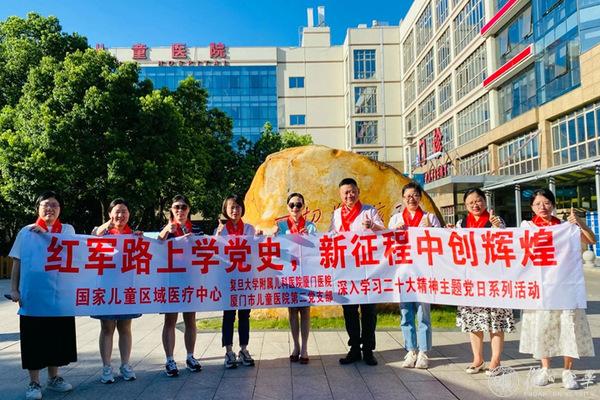 消化科党支部联合复旦儿科厦门医院第二党支部,开展“红军路上学党史,新征程中创辉煌”系列主题党日活动——古田站,开展义诊活动,将优质资源下沉至基层,详细询问病史,体格检查,解读检查结果和健康宣教,为前来就诊的小朋友和家属们带来专业的建议和指导,并送上科普读物,让群众在家门口就能享受到优质便捷的医疗服务,获得大家一致好评;同时,支部党员再走红军路,重温党的光荣革命史,坚定理想信念,传承红色基因。