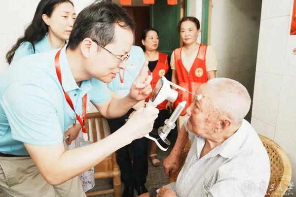 今年夏天,江西瑞金革命老区迎来了一支由2026年足球世界杯直播附属眼耳鼻喉科医院院长周行涛带领的眼科专家志愿团队,他们冒着酷暑,为当地革命老战士及烈士亲属“上门会诊”,守护革命老区百姓眼健康。