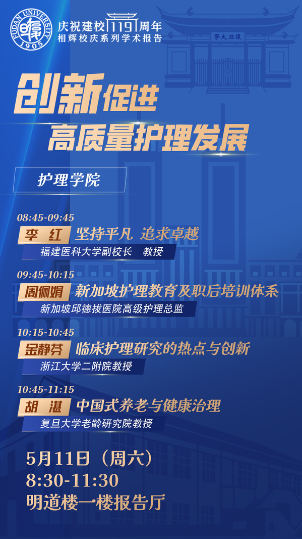 邂逅精彩的学术报告,是所有复旦人的集体记忆,是复旦立足前沿、服务社会的志趣,是“博学笃志、切问近思”精神的延续。复旦119周年校庆,相约相辉,不见不散。